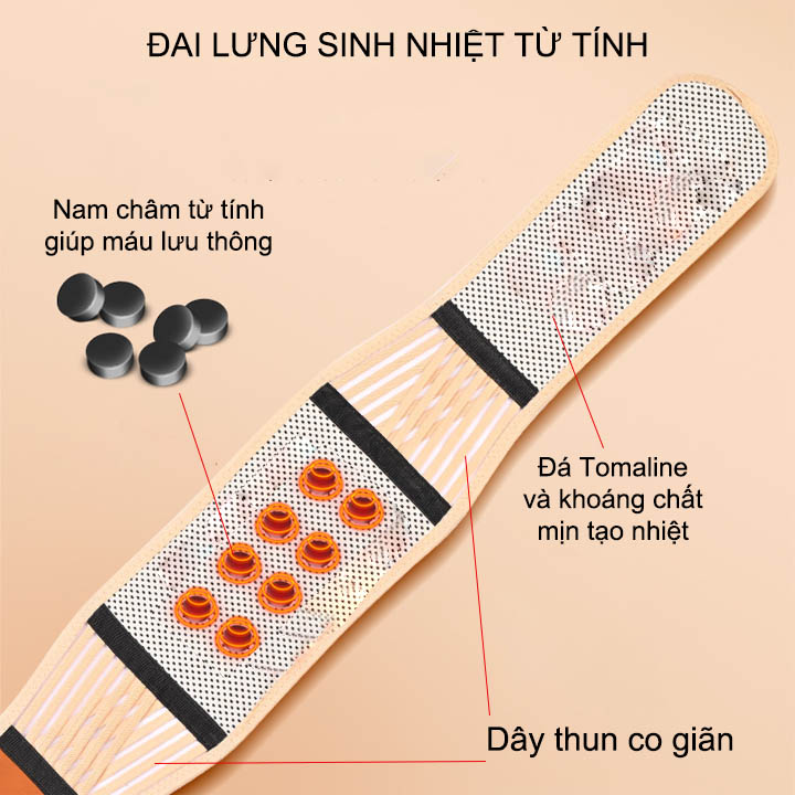 Ngoài ra còn có nam châm từ tính giúp lưu thông máu hiệu quả, hỗ trợ các bệnh liên quan đến cơ, xương, khớp vùng thắt lưng, thoát vị đĩa đệm, đai lưng có phần thun co giãn giúp thoải mái khi đeo