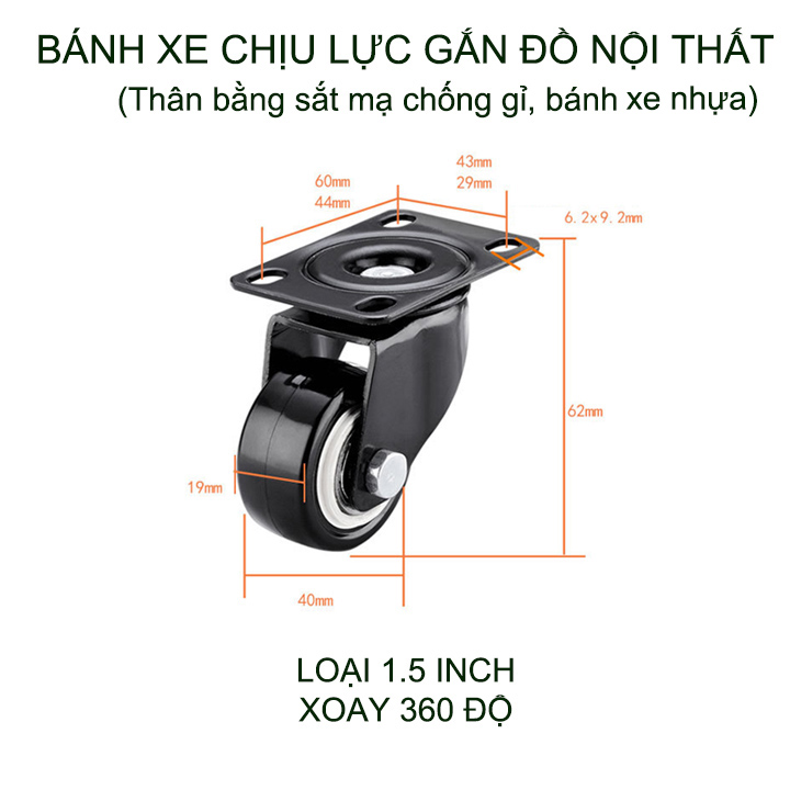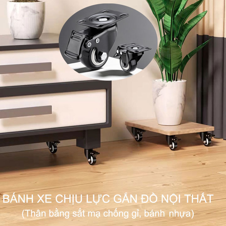 Bộ 2 bánh xe gắn đồ nội thất chịu lực lớn tới 60kg, loại 1.5-2 inch (4-4.9cm)
