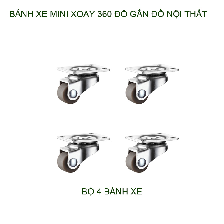 Bộ 4 bánh xe mini xoay 360 độ gắn đồ vật tiện dụng giúp di chuyển kệ, bàn, ghế, giá để đồ dễ dàng