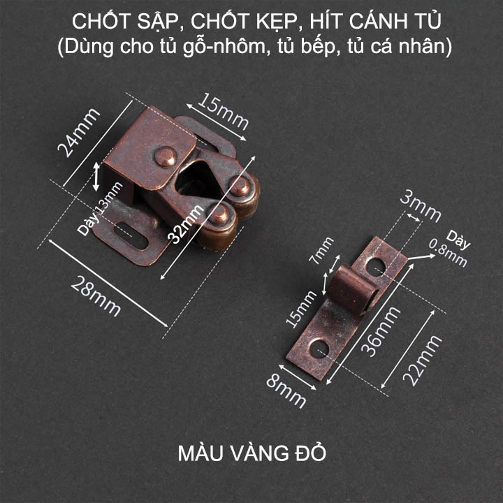 Ứng dụng: Chuyên dùng chốt cánh cửa tủ bếp, tủ cá nhân rất chắc chắn