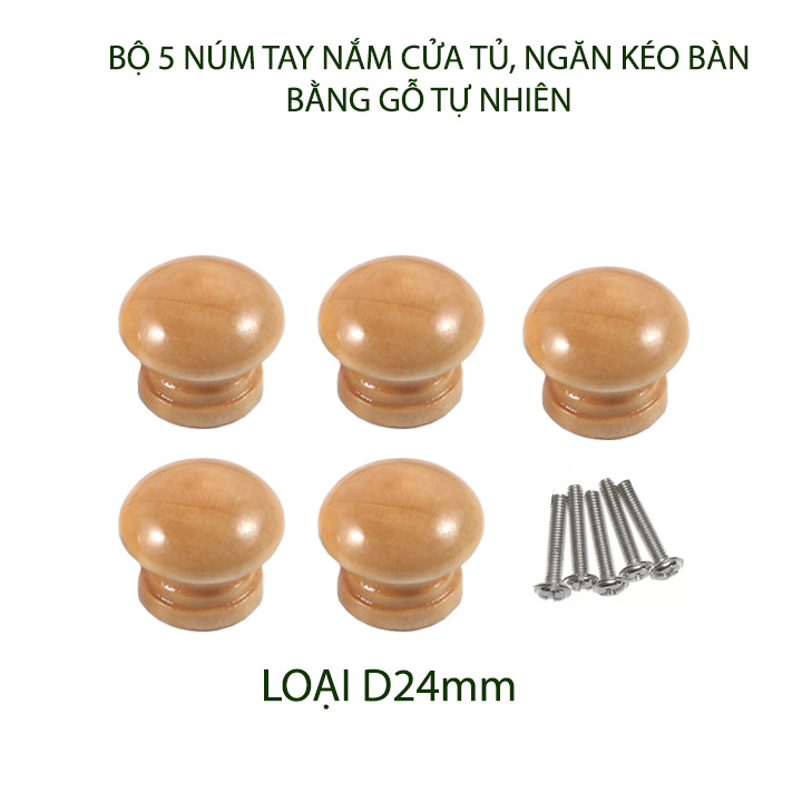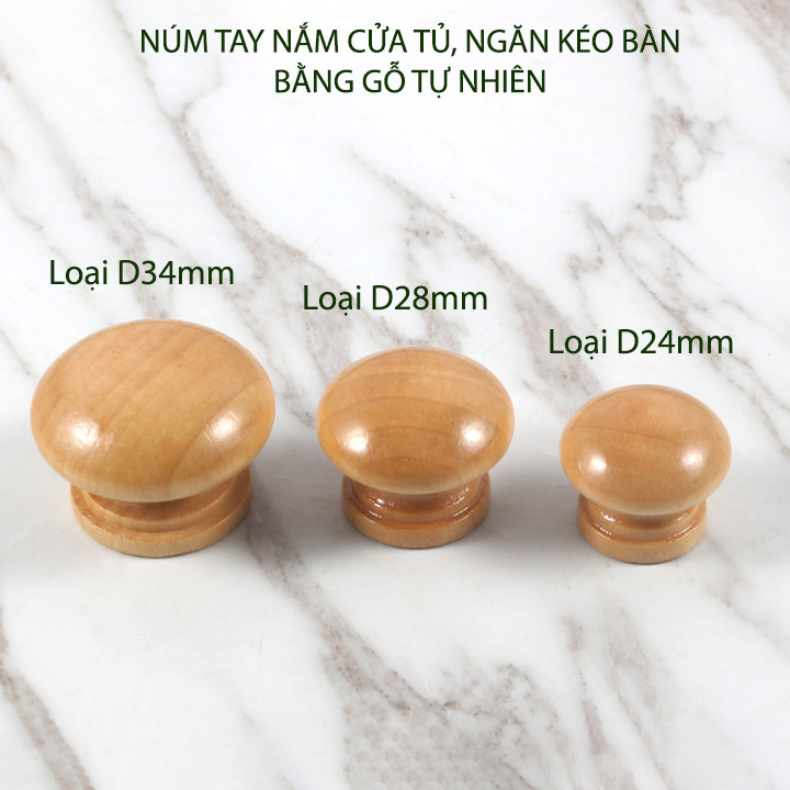 Núm tay nắm cửa tủ, ngăn kéo bàn tủ được thiết kế đơn giản, đẹp, sang trọng theo phong cách hiện đại. Vật liệu bằng gỗ tự nhiên sơn phủ bóng chống bám bẩn, chống nước rất bền, đẹp