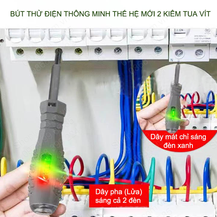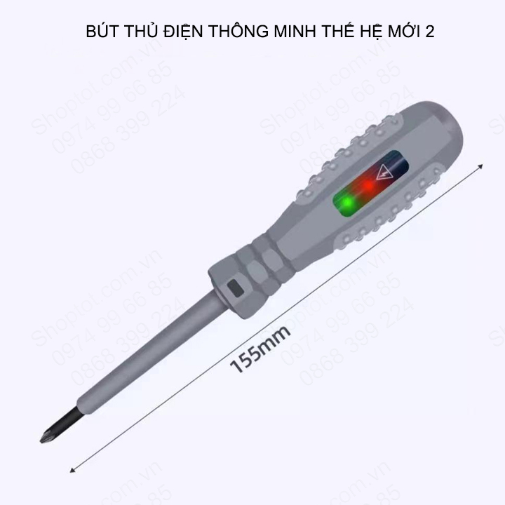 Bút thử điện thông minh thế hệ mới 02, với 2 đèn xanh đỏ, tua vít từ tính, kiểm tra dây điện đứt ngầm, đo thông mạch (M886)