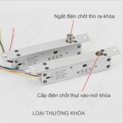 Loại chốt: 2 chốt trong (đóng mở bằng núm vặn), 2 chốt ngoài (đóng mở bằng khóa số), độc lập với nhau (trong khóa ngoài không mở được và ngoài khóa trong cũng không mở được)