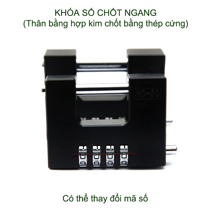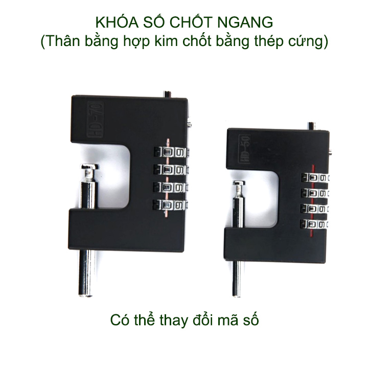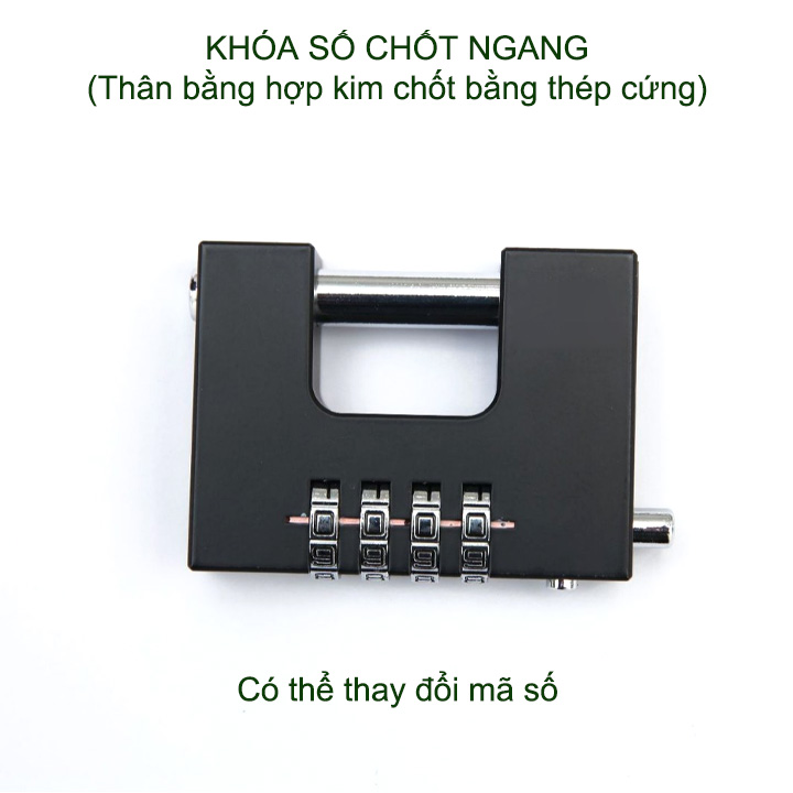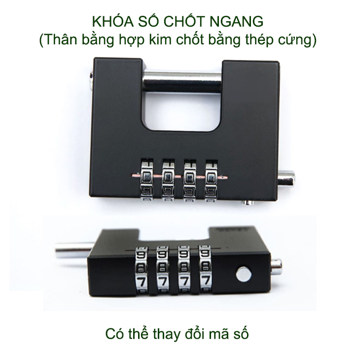 Khóa số chốt ngang chống cắt được thiết kế thông minh sáng tạo, chắc chắn, an toàn. Khóa được trang bị 4 mã số có thể thay đổi theo ý minh nên rất toàn, không sợ bị lộ mật mã. Đặc biệt chốt khóa kiểu ngang với đường kính lên tới 7-10mm bằng thép cứng không gỉ, chống cắt, rất bền và an toàn.