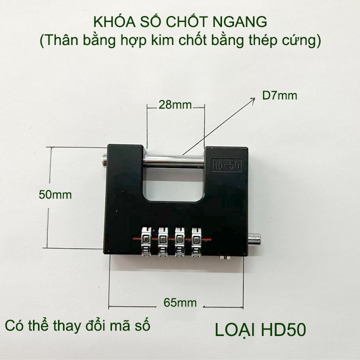 Kích thước loại nhỏ HD50: 65x50mm, chốt khóa D7mm